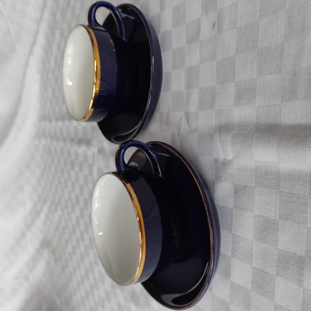 2 Cappuccino Tassen in edlem Blau mit Goldrand Schöne und Edle Machart. Keine Gebrauchsspuren. Die Tassen waren im Schrank zur Deko gestanden. 5 Euro.