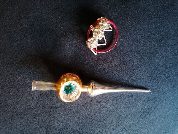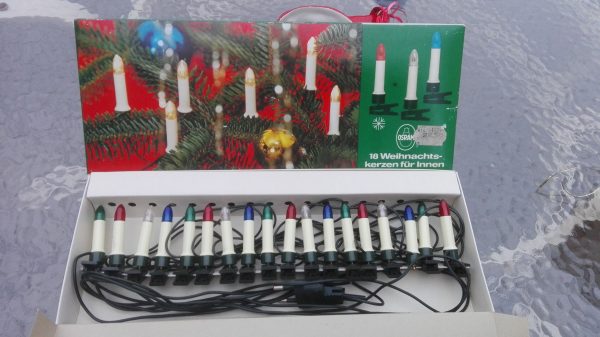 vintage Baumbeleuchtung mit 18 Kerzen, alte Christbaumspitze Mundgeblasen und Ornament 50/60ziger Jahre bei Interesse machen Sie mir ein faires Angebot.