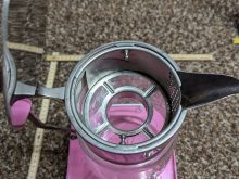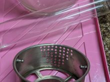 Ausguß einstellbar mit Sieb oder Stückchen-Durchgang offen;