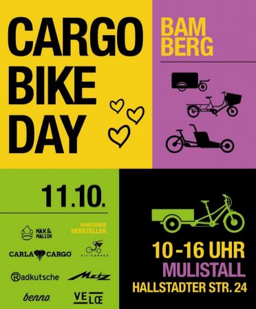 Von 10-16 Uhr unterschiedliche Lastenräder Probe fahren und Euch beraten lassen.