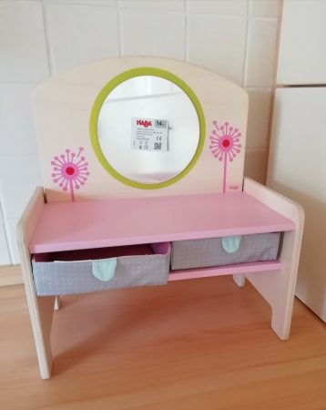 Wunderschöner Puppenschminktisch von Haba Serie Pusteblume. Der Schminktisch ist neuwertig und unbenutzt da wir ihn doppelt hatten. Nur der Karton ist beschädigt. Neupreis bei Haba 49,99 Euro.