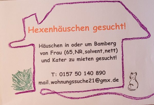 Häuschen in oder um Bamberg von Frau (65) und Kater gesucht!
