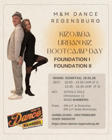 Starte deine Kizomba/IUrban KIZ-Reise mit uns! Mit „Tanzreise“ meinen wir den Weg, den du im Tanzen gehst – von den ersten Schritten bis zu dem Moment, in dem du dich auf der Tanzfläche frei und sicher fühlst. In diesem Bootcamp begleiten wir dich auf genau diesem Weg: