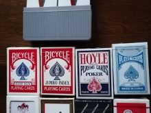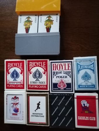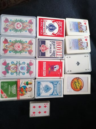 Ich verkaufe z. B. Trivial Pursuit Genuss Edition, Wissensspiel aus 6 Kategorien, Original Texas Poker Cards, Kem Doppelset Kunststoffkarten 2x54 Karten, Pfeil rot/blau, Set besteht aus einem roten und einem blauen Deck. Die Karten sind in einer harten schwarzen Kem-Box aus Kunststoff. Hervorragende Flexibilität und Stärke. Abrieb- und bruchfest, Prestige Professionel Bicycle Pokerdeck, verschiedene neue Kartenspiele für Canasta, Bridge, Rommé, Skat, Poker und mehr 1 Mini Deck, Cribbage Board Holz, Domino Steine Marblelike, UNO original verpackt, Fang den Hut, das Original von Ravensburger, Kniffel mit Lederbecher orig. verpackt, aus Raucher und Haustierfreien Haushalt. Bei Interesse machen Sie mir ein faires Angebot.