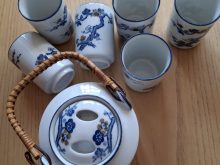 96129 - Strullendorf 10. September 2025 Teeservice, 1 Teekanne, 6 Teebecher, blaues Muster 1 Teekanne (ca. 0,5 l) mit 6 Teebechenr (Höhe ca. 7,5 cm, Durchmesser ca. 5,7 cm) aus Porzellan zu...