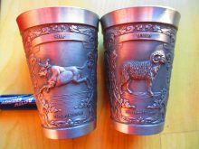 96199 - Zapfendorf 5. Januar 2026 Zinnbecher mit Sternzeichen Die Becher sind rundherum mit fein gearbeiteten Relief verziert, das die Sternzeichen Stier und Widder zeigt. Oben und unten sind die...