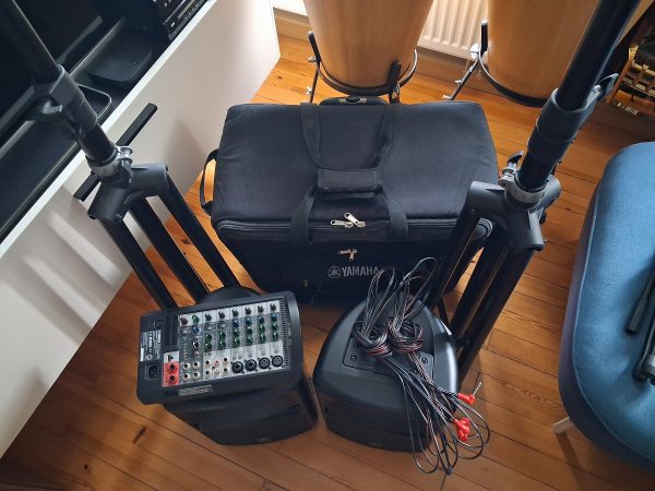 Portables 400-Watt-PA-System mit 8-Kanal-Mixer, zwei 8''-Lautsprechern, einem iPod/iPhone-USB-Anschluss, SPX-Digitalhall, interner Feedback-Unterdrückung und vielseitigem EQ.