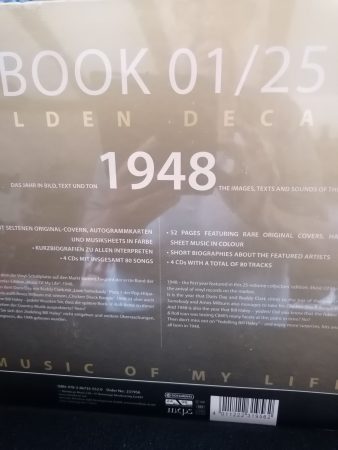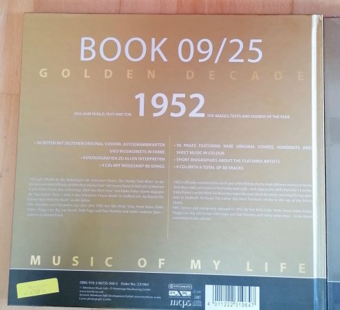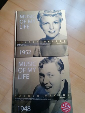 Zudem verkaufe ich 2 Golden Decade Books, CD Sammlungen NEU, Music of My Life, 56 Seiten mit seltenen original Covern, Autogrammkarten und Musiksheets in Farbe, Kurzbiografien zu allen Interpreten Book 01/25 (1948) und Book 09/25 (1952) mit je 4 CDs und 20 Songs pro CD, insgesamt 160 Songs, neu original eingeschweißt.