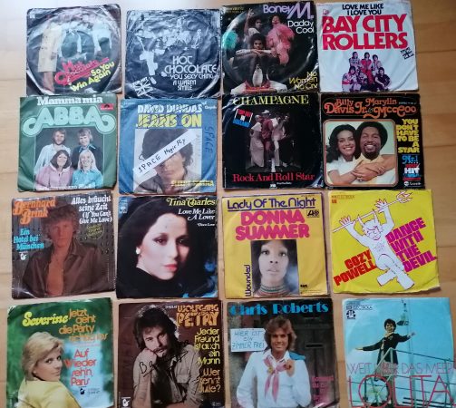 Singles aus den 60/70ziger Jahren und älter, einzeln mit Cover ab 2,- € pro Stück, ab 50 Stück aus Album 1,- € pro Stück, 3 Alben mit z.B. Rolling Stones, Beatles, Trini Lopez, The Lords, Casey Jones, Nany Sinatra usw., Singles ohne Hülle haben teilweise altersentsprechende Gebrauchsspuren. LP´s sind neuwertig und haben keine Kratzer, 8 LP´s (Bild 9) sind noch original eingeschweißt.