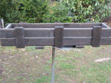 Holz-Ständer mit Kleiderwäschesäcke, zum sortieren;