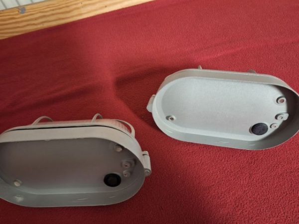 Verkaufe zwei nicht benutzte / nie montierte Wand-/Deckenlampen von HEITRONIC. Ca. 22cm lang, 11cm breit, 10cm hoch. IP 54, E 27, max. 60W / 9W (LED). Unbenutztes Befestigungsmaterial in Tütchen dabei. Unverbindliche Besichtigung gerne möglich. Festpreis für beide zusammen 6€. Selbstabholung, bei Versand zzgl. erforderliches Porto. Tel. 0951/53970 (AB).