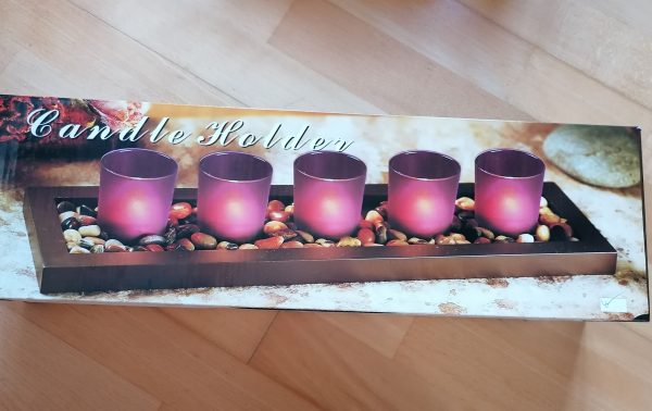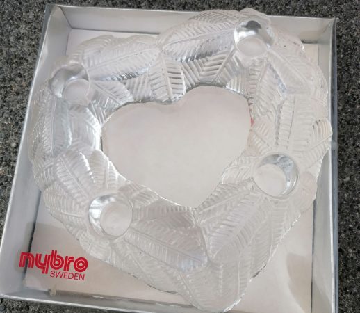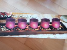 Esposa 6-teiliges Holztablett mit 5 Kerzenhalter aus Glas Maße ca. Holztablett L 45 x B 9 x H 14cm, Glas 5,5 x 8 cm, neu und noch original eingeschweißt, nicht nur für Weihnachten 25,-€, 1 exklusiver Herzkerzenhalter Kristallglas von NYBRO NordicHomeDesign 1970er Jahre aus Schweden für 4 Kerzen, in orig. Verpackung 35,- €,