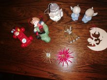 2 Satinstiefel Handarbeit und 1 Plüschstiefel, neu, 2 Schafe und Hackstock, Tischläufer gold, neu, 180 x 35 cm, 1 Tischläufer bestickt mit Rudolph 83 cm, vintage Zinnornamente neu und unbenutzt aus den 60/70ziger Jahren, Glocke, Tasse Santa Claus, Kaminkehrer, Glücksbringer von Goebel und viele kleine Deko Artikel, aus Raucher- und Haustierfreien Haushalt, bei Interesse machen Sie mir ein faires Angebot. Preis nach Vereinbarung,